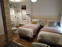 Cama doble con ventana a la terraza interior. Tv de pantalla plana. ¡Un refugio ideal para las parejas que prefieren compartir la cama pero no su espacio en el baño!